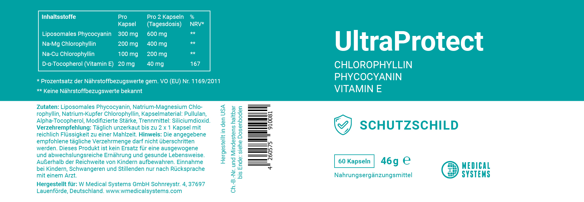 Liposomales Phycocyanin: 300 mgNa-Mg Chlorophyllin: 200 mg